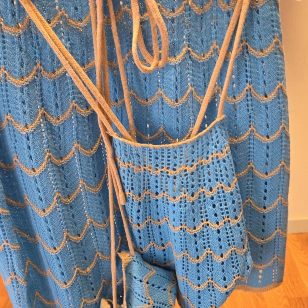 CROCHET 2-PIECE SKIRT SET - BLUE/TAN